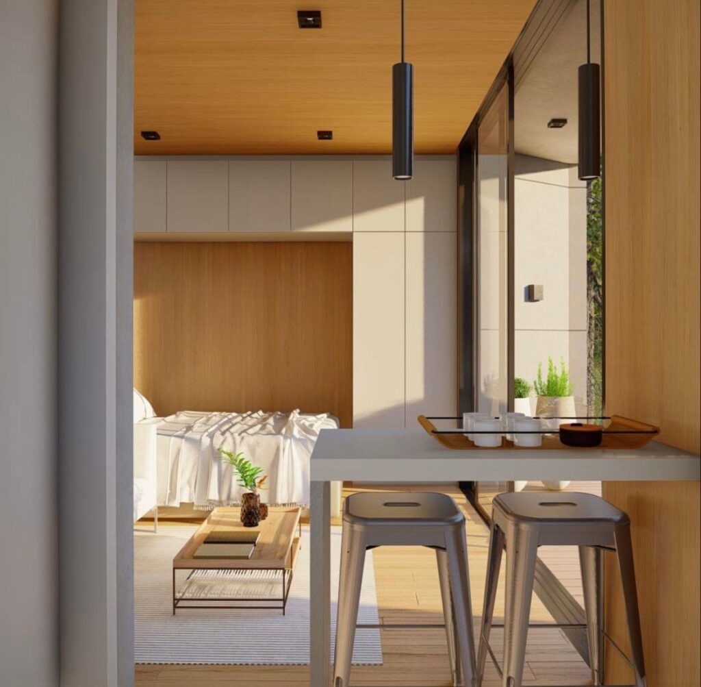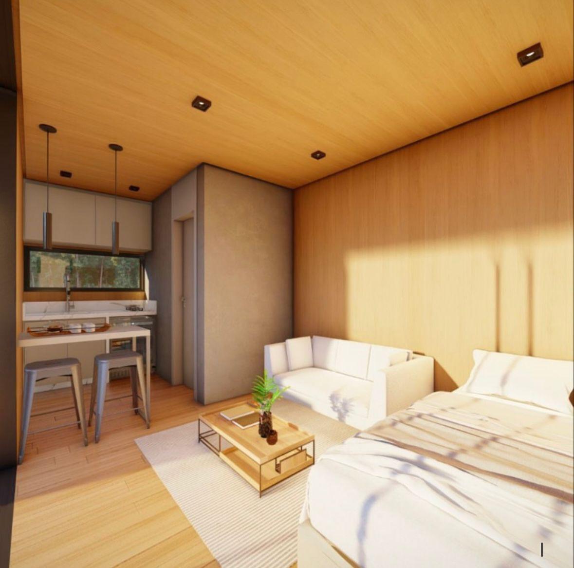 Com design compacto, moderno e funcional, o projeto possui 30 m² de área total, sendo 18 m² de área construída, além de varanda integrada e deck externo, proporcionando conforto e valorização do espaço mesmo em uma metragem reduzida.